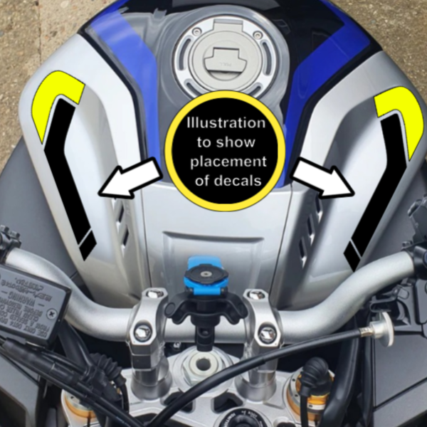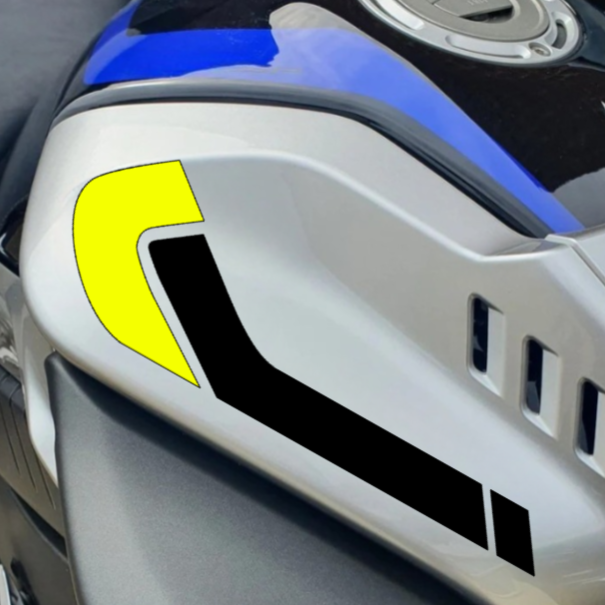 2 x Tank decals in BLACK / FLUO to fit Yamaha MT10 (1 x left, 1 x right) designed to fit perfectly with the shape of the motorcycle, maintaining a classy and stylish look.